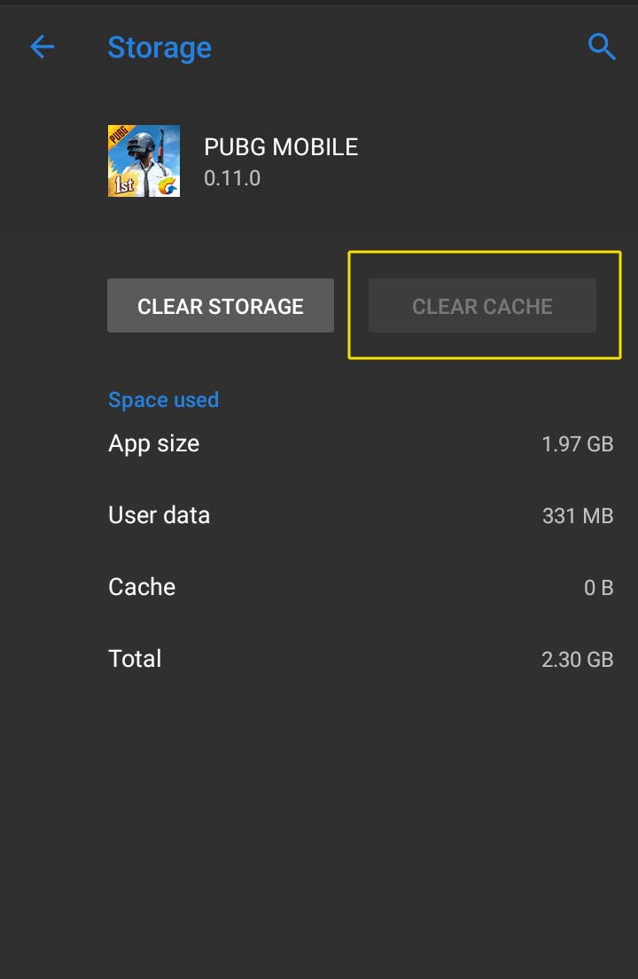 Saya masuk ke setting » apps » pubg mobile » storage