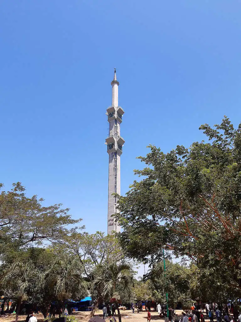 Terdapat menara yang tingginya lebih dari 50 meter. Menandakan bahwa mesjid ini dibangun dengan arsitektur yang megah.